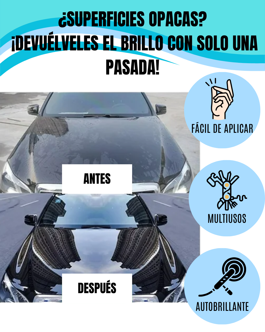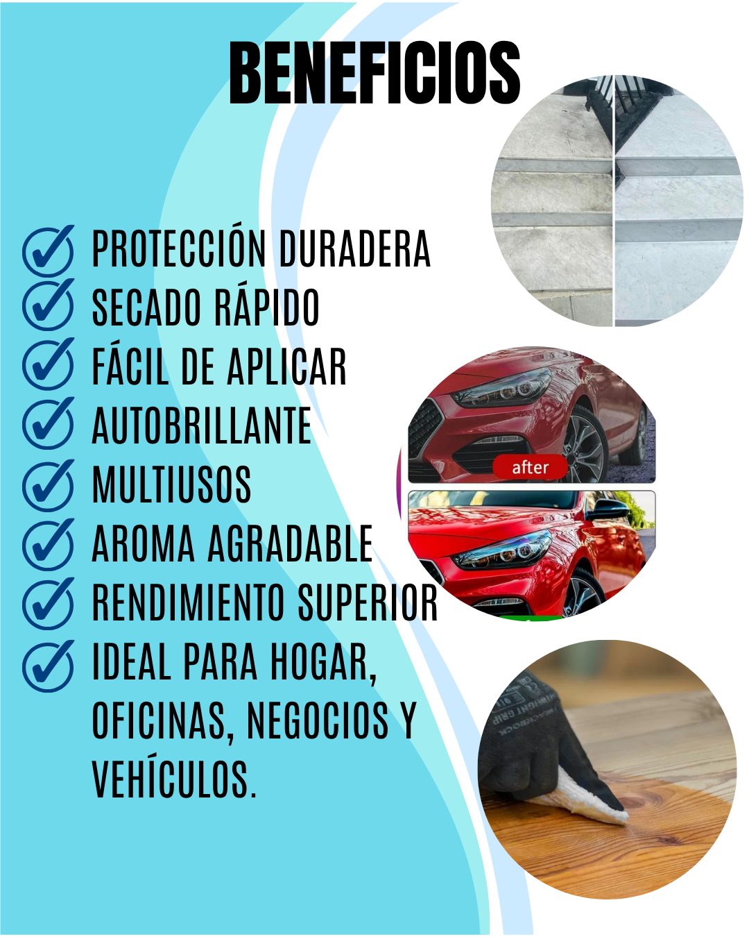 🪩 Brillo instantáneo → Superficies relucientes sin necesidad de pulir.