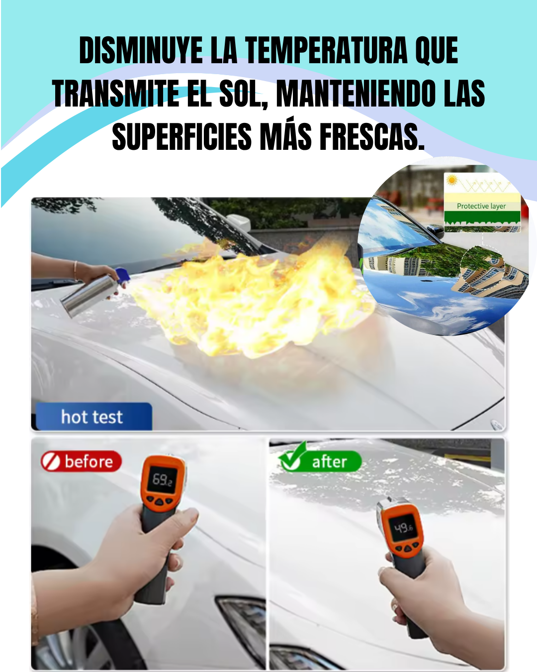 ☀️ Reduce el calor del sol → Mantiene las superficies más frescas y cómodas