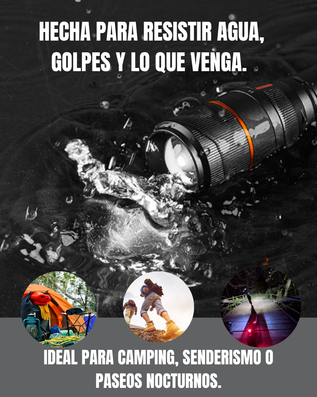 Con la LINTERNA FLASHPRO X®, siempre tendrás una fuente de luz confiable en tus manos. Asegura tu camino y el de tu familia mientras disfrutas de paseos nocturnos sin preocupaciones. 🌙🛡️